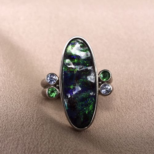 Palladiumweissgold 750, Opal, Safire, Tsavorithe