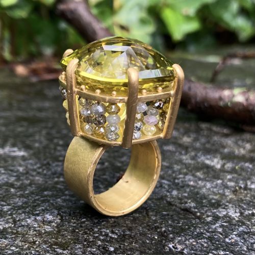 Palladiumweissgold 750 Paraiba Turmalin, graue Brillanten